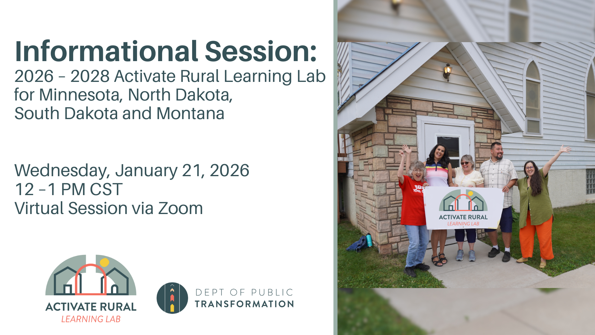 The virtual informational session will provide an overview of the 2026 – 2028 Activate Rural Learning Lab and the application process for building activation projects in Minnesota, North Dakota, South Dakota and Montana.