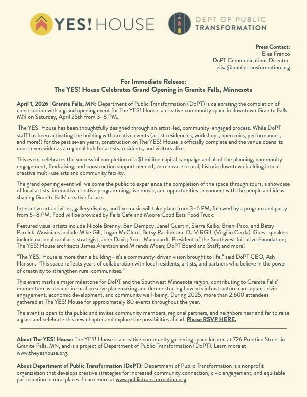 The YES! House has been hosting creative events for the past few years, but now, after completing a $1M capital campaign—and overcoming the hurdles involved in rural renovation projects—construction is officially complete! Hurray!